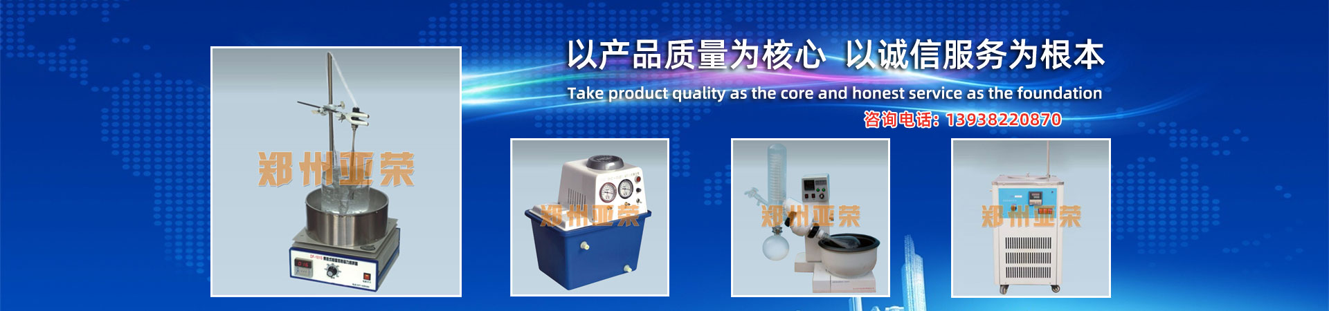 鄭州市亞榮儀器有限公司是主要銷售教學儀器的專業廠家,主要生產旋轉蒸發儀、雙層玻璃反應釜旋轉蒸發器循環水真空泵、玻璃儀器氣流烘干器、低溫冷卻液循環泵真空抽濾器電熱鼓風干燥箱、真空干燥箱、水熱合成反應釜、高壓反應釜、數顯恒溫電熱套、高溫油浴鍋、磁力攪拌器、超聲波清洗器、水(油)浴鍋、冷凍干燥機、智能玻璃恒溫水浴、水槽,臺式高速離心機、紫外分析儀、控溫儀、振蕩器、微波化學反應器、顯微熔點測定儀、聚四氟乙烯攪拌棒、攪拌塞、攪拌子、升降臺等多種型號的教學儀器。